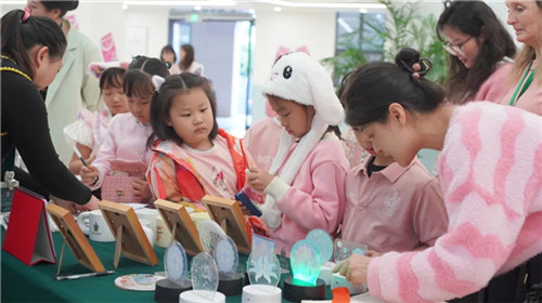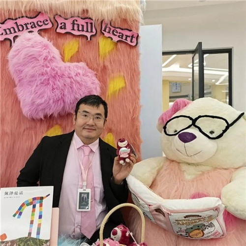 活动当天,师生与家长志愿者们身着各式粉色服饰,在深秋的校园中传递温暖。清晨,两米高的粉色互动玩偶现身校门,为晨间入校的问候增添了亲切与活力。除持续进行的爱心募捐外,现场还设有精心布置的义卖区。所有义卖品——从实用文具、定制玩偶,到精选图书与纪念徽章,皆由在校师生亲手制作或筹备。本次活动所筹得的善款,将全部捐赠给四川省肿瘤医院儿童病房。