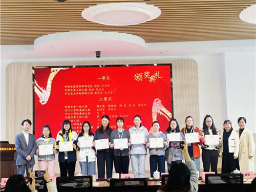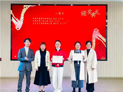 分享活动后举行了颁奖仪式,新都区教科院学前教育与小学教育研究所副所长曾雪梅、新都区教育科学研究院教研员张楠、新都三幼教育集团副园长吴霞,共同为在成都市“3-6岁儿童习惯养成教育”优秀论文(案例)评选中获奖的教师代表们颁发奖状。