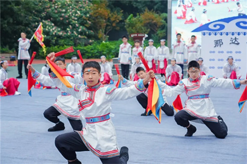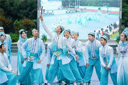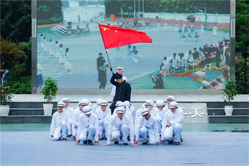 各班级的创意方阵成为全场焦点。同学们精神抖擞,创意纷呈,他们通过深入探寻城市文脉并将其精髓融入表演,深刻增强了文化认同与自信。他们犹如破土春笋,将石笋学子拔节向上的活力展现得淋漓尽致。
