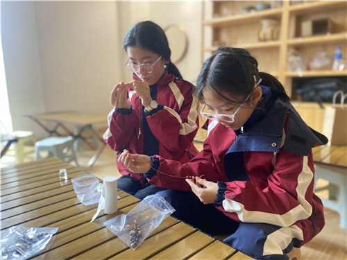 此外,“感知种子的力量”自然手工活动成为亮点之一。孩子们亲手制作种子手串,在创作过程中体会种子蕴含的生命力与坚韧精神。导师和教官全程陪同,为孩子们的安全保驾护航,也让每一项活动在科学与趣味中完美融合。