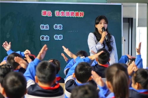 董文倩老师的《谦让,让生活更美好》则体现了德育课程的深度与思辨性。她从“课前缺少一把椅子”的真实冲突切入,瞬间激发学生的共鸣,引出主题。随后,通过自编情景剧《越界风波》和《课间接水》正反案例的对比分析,引导学生多角度发现谦让带来的“快乐、友谊、安全、有序”等多重价值。课程并未止步于倡导美德,而是通过“艺术节站位”“抢皮球”“研学乘车座位顺序”等生活化场景,引导学生展开价值辨析,共同提炼出“能谦让、会分辨”的行为准则,巧妙平衡了传统美德与个体权益之间的关系。