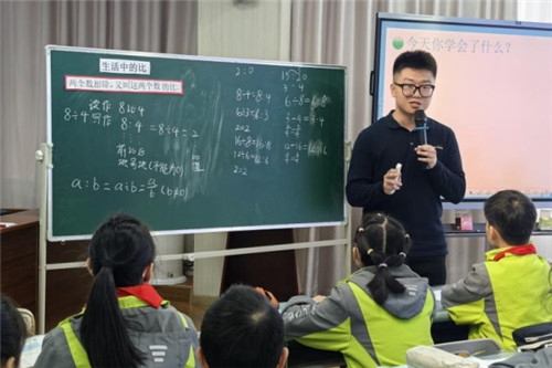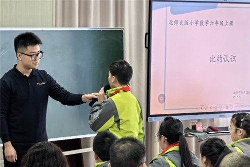 首先由何一凡老师带来的六年级数学《比的认识》示范课,以“两个数相除”的已有知识为切入点,自然过渡到“比”的概念建构,通过生活中的具体实例(如奶茶配比、国旗长宽比),让抽象的数学概念变得具象可感,有效降低学生认知门槛,培养结构化思维能力,让零散的知识形成有逻辑的体系。