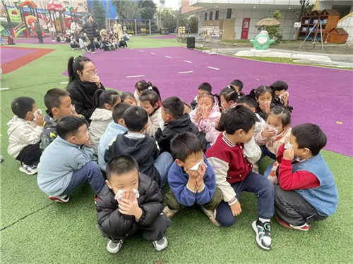 撤离到安全地带后,保安人员清查班级各个角落,确保没有遗漏的人员,各班教师迅速维持好秩序,清点班级人数,并及时向园长汇报。