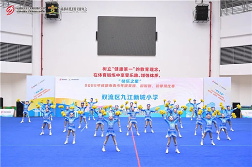2025年10月25-26日,由成都市体育局、市教育局联合主办的“快乐之星”青少年健美操、啦啦操、韵律操比赛中,成都市双流区九江新城小学健美操队凭借出色表现,在表演轻器械二级项目公开组少儿丙组的激烈角逐中,从11支参赛队伍中脱颖而出,荣获第一名。