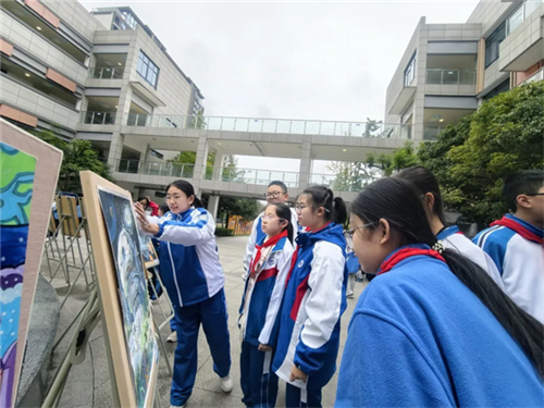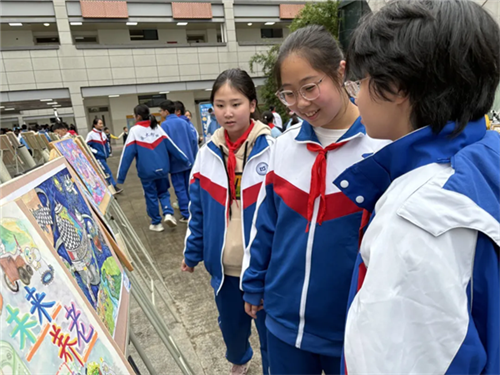 在各个展位前,成大附中学子或驻足凝视,或俯身观察,或与创作者深入交流。面对能远程完成特定任务的无人机,大家好奇地询问操控原理与研发过程;盯着灵活运转的VEX机器人,纷纷探讨其编程逻辑与应用场景;在科幻画前,同学们互相分享自己对未来科技的畅想。