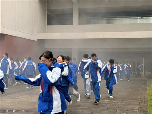 为强化全校师生应急避险意识,提升校园安全防范能力,成都大学附属中学安宁河校区于2025年11月12日上午9:30开展防地震、火灾应急疏散演练。全体师生、保安、保洁、生活老师、食堂员工都积极响应,认真学习。整个过程组织严密、分工明确、行动有序。