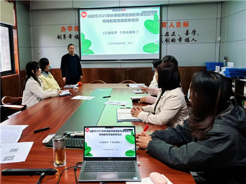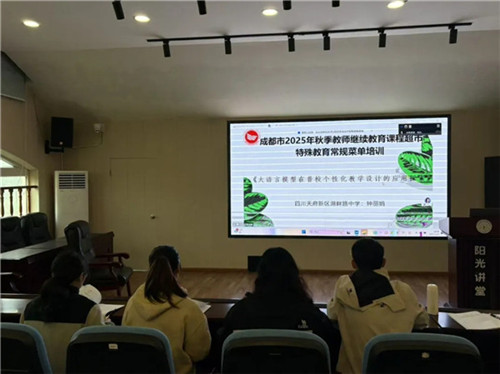 为推动大语言模型技术与教育教学的深度融合,提升教师个性化教学的实操能力,四川天府新区教育科学研究院于2025年11月6日上午,在四川天府新区特殊教育学校(以下简称:天府特校)组织开展了成都市2025年秋季教师继续教育课程超市特殊教育常规菜单第三次培训,本次培训以“大语言模型在个性化教学中的运用”为核心主题,聚焦实操方法,邀请四位教师进行针对性分享,助力教师快速应用于教学。