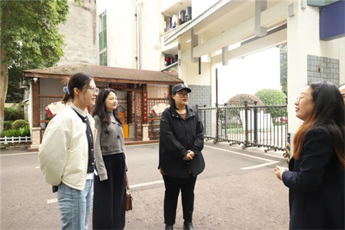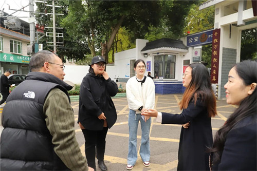 在张颖的陪同下,调研组三位专家走进校园,沉浸式探寻永兴小学环创作品的创作始末与制作细节。