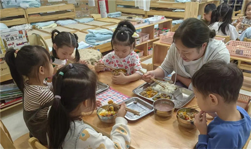通江幼儿园始终将食品安全与营养健康置于工作的核心。在园长的带领下,全体行政人员共同履行陪餐责任,坚持落实“每日行政陪餐制度”。每天,园长和行政老师们都会走进班级,和孩子们坐在一起,细心观察他们的用餐情况。