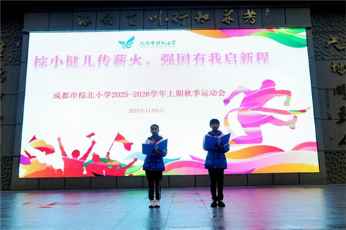 2025年11月6日,成都市棕北小学以“棕小健儿传薪火,强国有我启新程”为主题,在南苑、飞云两校点同步举办2025-2026学年秋季趣味运动会。这场融合“拼搏协作”体育精神与“七彩化慧,绿意润心”校训内涵的盛会,不仅实现了“全员参与、五育并举”的教育目标,更以双校联动的创新形式与深度家校协作成为秋日校园最动人的风景。