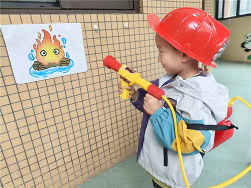 演练前,班级进行形式丰富的消防安全教育活动,老师们通过有趣的游戏让孩子了解火灾中逃生、自救的正确方法和认识消火栓、灭火器。