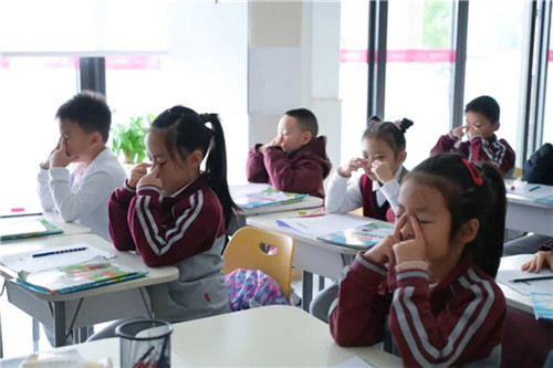课间做眼保健操,熄灯自觉闭目养神,出操、就餐时,路队化身为文明的“小火车”,伴随着朗朗上口的古诗或欢快的歌声,排队前行成为一道流动的风景。