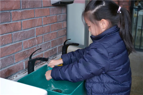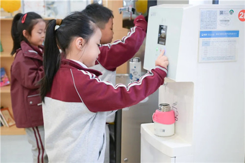 课后,“自己整理书包四步法”(清空抽屉、分类物品、按序放入、检查确认)让每个孩子都能井井有条地打理自己的行囊;自行排队打水、喝水、归位,补充水能量的同时,养成好习惯。
