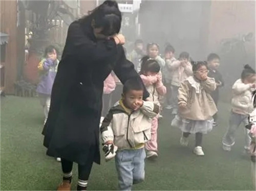 各班老师在演练前,组织幼儿进行了消防安全教学活动,对逃生技能、消防知识、预防踩踏等安全方面进行宣教,引导幼儿了解火灾中自救的方法,学习基本的消防安全知识和火场逃生技能。