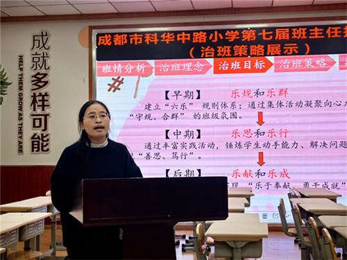 近日,成都市科华中路小学第七届班主任技能大赛圆满落幕。三位班主任围绕“同伴乐相处”开展了主题班会课并分享治班策略,聚焦学生人际交往能力的培养,展现了卓越的育人智慧与专业素养。