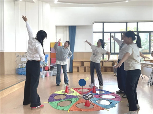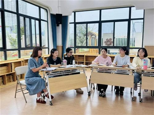 在互动交流中,大家结合《3-6岁儿童学习与发展指南》中健康领域目标,聚焦各环节动作设计,研讨如何平衡早操中“游戏性”“情景性”与“发展性”,大家积极思考、激烈讨论,提出“上肢与下肢锻炼是否均衡”“徒手操是否符合运动轨迹”“关注音乐节奏与动作衔接”等问题,同时又积极思考共商策略,一起找到优化措施。