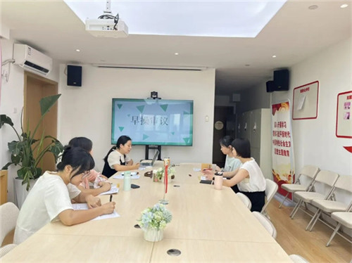 早操观摩后,各班部教师代表回顾了在实践中做了怎样的调整,并进行自我评价。同时,本次看评也是一次保教联动互动,教养组和后勤保健组老师共同参与,进一步关注师幼关系与教师指导过程,明确了早操中的保教配合要点、保育老师在早操中的关注与护理要点,为幼儿的身体健康保驾护航。