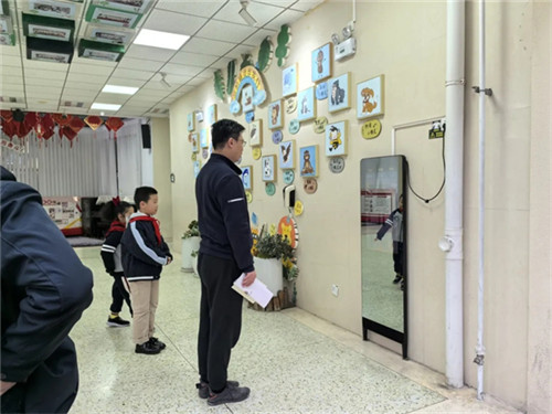 专家们在德育处副主任李若琛,心理组甘露老师,品格星主播江夏萱、马昕墨的带领下参观学校基于脑科学、人工智能的课间活动场域。