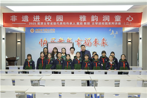 2025年11月18日,蜀派古琴省级代表性传承人戴茹教授(字梓又,四川音乐学院民乐系扬琴、古琴双专业硕士生导师,中国乐器协会古琴/扬琴专业委员会副主任,蜀派古琴四川省级非遗传承人,成都古琴文化学会会长)走进成都市马鞍小学,带来一场干货满满的古琴文化盛宴。