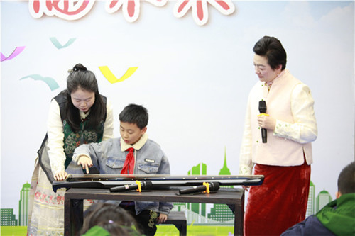 活动最后,戴茹邀请孩子们近距离触摸古琴,亲身学习古琴基本手法。当稚嫩的指尖第一次落在琴弦上,传统文化的种子也在孩子们心中悄然萌发。