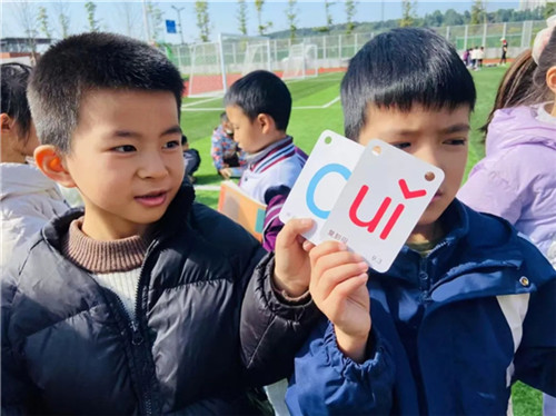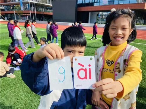阳光洒在孩子们的笑脸上,老师的相机不停按下快门:有的小组拼完后兴奋地举手喊“老师快看”,有的孩子对着照片里的自己咯咯笑,还有的拉着同伴讨论“下次能不能在花园里拼更难的拼音”。当课堂从封闭的教室走到开阔的操场,学习不再是“坐着听”,而是“动起来”“玩起来”——孩子们在肢体互动中记住了拼音形状,在协作交流中掌握了拼音拼读,更在阳光下收获了课堂之外的快乐。