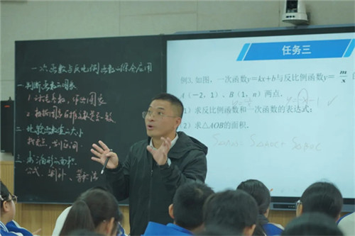 在交流环节,杨敬民与数学组教师围绕“如何提升概念课深度”“如何优化课堂分组活动”“如何贯通初高中函数教学”等议题展开研讨。他强调,“数学教学不仅要‘教知识’,更要‘教思维’;不仅要‘讲清楚’,更要‘让学生想清楚’。”