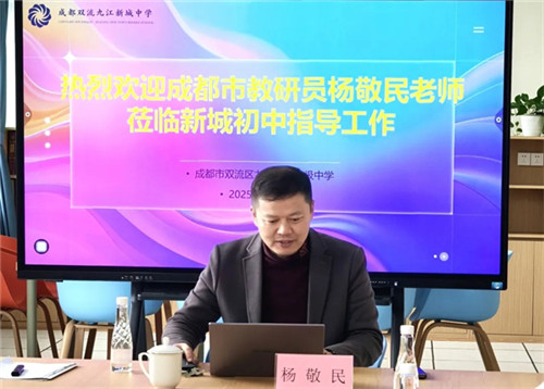 近日,成都市教科院数学教研员杨敬民来到成都市双流区九江新城初级中学(以下简称:九江新城初中),深入数学课堂,开展教学调研与指导工作,为学校数学教学注入新思路、新活力。