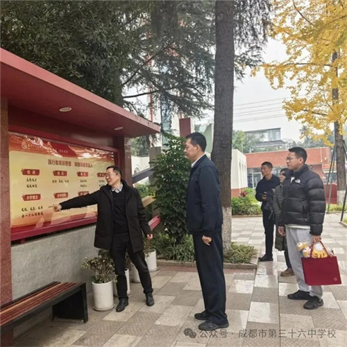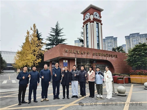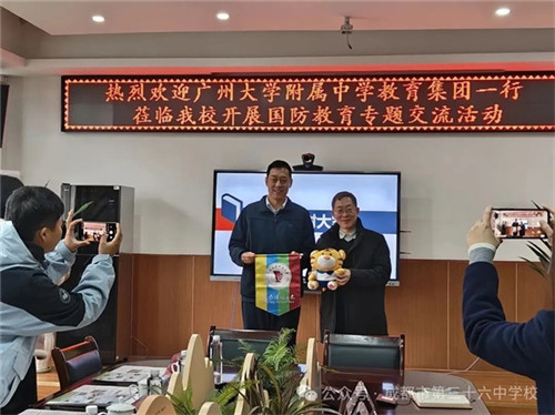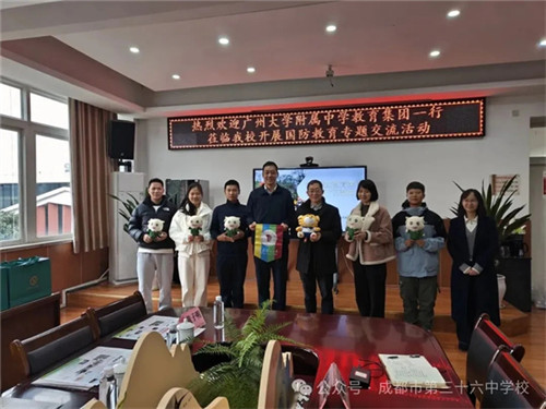 2025年11月22日,广州大学附属中学教育集团国防教育发展研究中心主任雷鹏俊一行九人走进成都市第三十六中学(以下简称:成都三十六中),开展国防教育专题交流活动。成都三十六中党委书记吴雪峰、校长谢江林携中层干部代表热情接待并陪同交流。