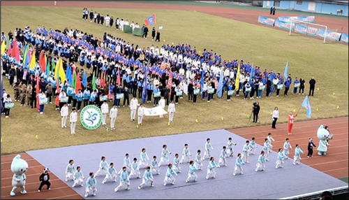 开幕式上,都江堰市北街小学党总支书记周丽带领展示方队入场。古筝轻扬,奏响原创校歌《若水少年梦》;衣间剪纸展现都江堰山水、跃动熊猫灵韵,更以刚柔并济的八段锦,诠释灌区千年智慧,尽显新时代“若水少年”的昂扬风采!