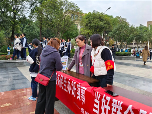 为深入践行“我为群众办实事”理念,切实发挥党员先锋模范作用,11月14日,成都市工程职业技术学校(以下简称:工程职校)党委组织党员代表在学校功成广场开展“服务民生办好实事 当好群众贴心人”志愿服务活动,以实际行动为家长们排忧解难,传递组织温暖。