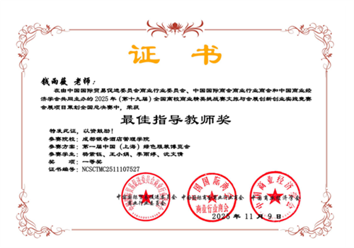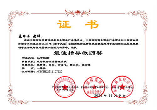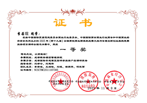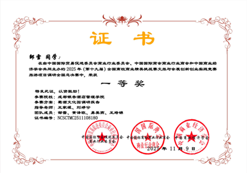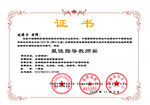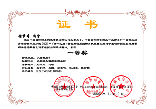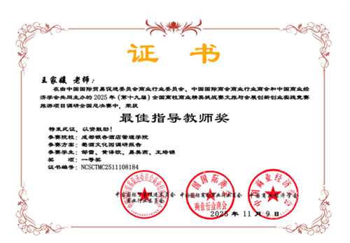 一直以来,该校始终坚持“以赛促教、以赛促学、以赛促创”的育人理念,将高水平学科竞赛作为深化教学改革、提升学生综合能力的重要平台。此次获奖既是全体参赛师生共同努力的成果,也是该校长期深耕文旅与会展领域人才培养的生动体现。未来,成都银杏酒店管理学院将继续聚焦行业发展需求,加强实践教学与产业需求的衔接,培养更多适应行业发展的高素质创新型人才,为文旅与会展产业高质量发展注入银杏力量!(王俊 谢洋子佳)
