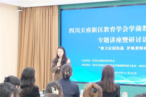 2025年11月24日上午,由四川天府新区教育学会主办、学前教育教师发展专业委员会与学思幼儿园共同承办的“聚力家园沟通,护航教师成长”专题讲座暨研讨活动在学思幼儿园顺利开展。天府新区教育学会秘书处卢静敏老师、天府新区教科院教研员彭庆老师、学前教师发展专委会秘书长张进园长,以及专委会成员参加了本次活动。