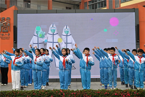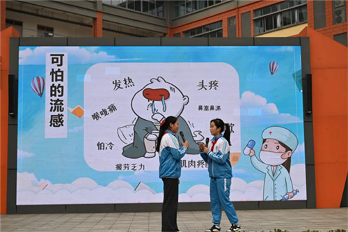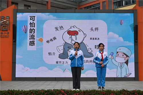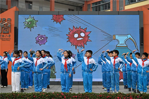 近日,成都市王贾桥小学六年级三班以“预防传染病 让病毒走开”为主题承办了一周集体晨会,借情景剧与手势舞的鲜活形式,让防疫知识悄然浸润童心。