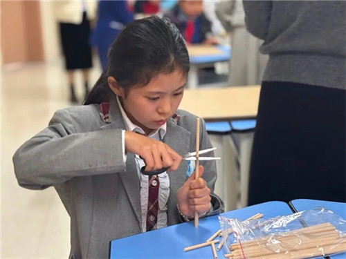 在模型制作阶段,同学们遇到了材料承重、结构稳定等诸多实际难题。叶欣带领她们反复试验,共同探讨解决方案,将课堂上的科学原理应用于实践。在老师持续的陪伴与引导下,同学们不断优化,精益求精,解决问题的能力在过程中得到了极大锻炼。