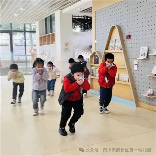 为将理论知识转化为实际行动,以演练促进实战能力的提升,幼儿园同步开展了消防应急疏散演练活动。随着消防警报声的骤然响起,孩子们在老师的指挥下,迅速按照预先规划好的安全疏散路线,用湿毛巾紧紧捂住口鼻,以低姿弯腰快速前进,整个过程紧张有序,孩子们迅速、安全地撤离到指定的安全地带。
