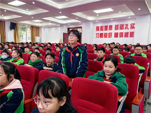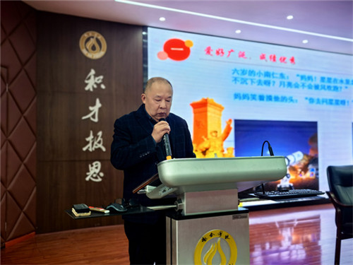 在六年级所有同学的热烈掌声中,龙泉驿区关工委五老宣讲团的成员孙德鸿爷爷带来了主题为《胸怀祖国的时代楷模——致敬南仁东爷爷》的演讲。