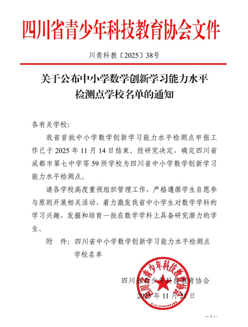 近日,四川省首批中小学创新学习能力水平检测点学校名单正式公布,成都市双流区蓝港外国语学校凭借在数学创新教育领域的扎实实践与突出成效,成功入选,成为区域内中小学创新教育发展的标杆示范校。