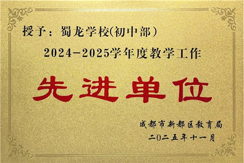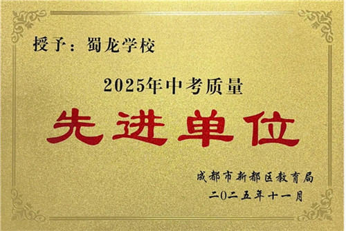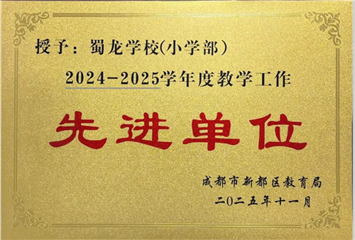 在2024-2025学年度中,成都市新都区蜀龙学校全面贯彻党的教育方针,深入实施素质教育,积极开展教育创新,夯实教师队伍建设,教学质量和办学水平进一步提升,荣获“2024-2025学年度教学工作先进单位(小学部)”“2024-2025学年度教学工作先进单位(初中部)”“2025年中考质量先进单位”称号。