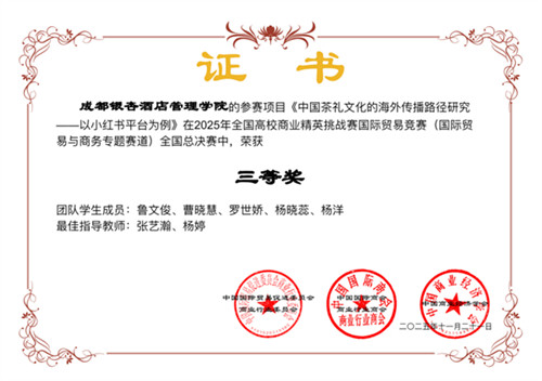 此次获奖充分体现了成都银杏酒店管理学院“以赛促学、以赛促教”育人理念的实践成效。未来,该校将持续深化产教融合,优化人才培养体系,为社会输送更多具有国际视野的高素质应用型人才。