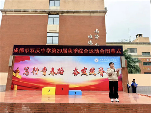 11月10日,成都市双庆中学第二十九届“逐梦赛场燃青春 强国有我向未来”秋季综合运动会在庄严而热烈的氛围中落下帷幕。