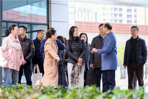 25日上午,省教科院附中党支部书记、校长叶玲带领导师团队参观校园,介绍学校“绿色教育”理念下的环境建设与育人文化。校园环境建设紧密围绕学校文化与育人目标,营造出浸润式育人氛围。