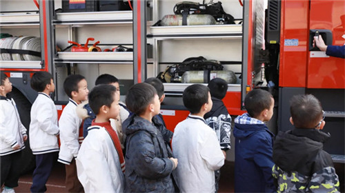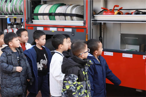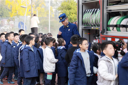 最后,孩子们兴奋地围在消防车旁,探索这个“红色巨人”的奥秘。