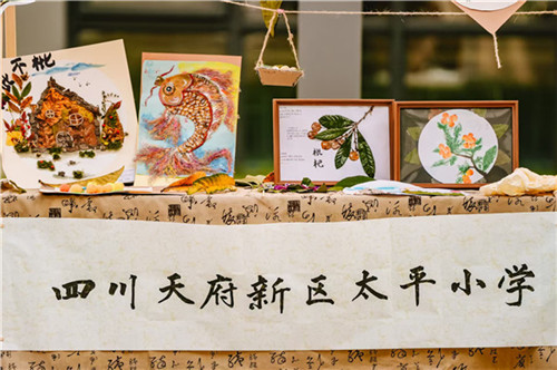 在论坛展览现场,太平小学的展区以“太平印记·枇杷晚翠”为主题,陈列学生制作的枇杷主题手工艺品、文创产品及实践记录。作品以枇杷果实的金黄与枝叶的翠绿为主色调,融合绘画、手工等多元形式,展现自然之美与劳动匠心。学生通过讲解作品设计理念与制作流程,传递对家乡文化的认同与热爱,体现“以劳育美、以劳促创”的综合育人成效。