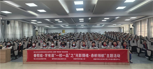 为深入贯彻落实全国少工委、国家电影局“红领巾的光影记忆”爱国主义教育主题观影活动要求,成都师范附属小学联合锦江区春熙街道教联体、峨眉电影集团举办春熙娃·学有道“一校一品”之“光影铸魂 赤帜领航”爱国主义教育主题观影活动。