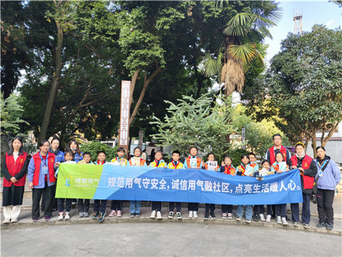 为普及燃气安全知识,提高社区居民安全防范意识,成都市龙舟路小学联动成都燃气公司和东湖街道永兴社区,组织少先队员志愿者走进周边社区,开展“小手牵大手 燃气安全齐步走”燃气安全知识进社区志愿活动。