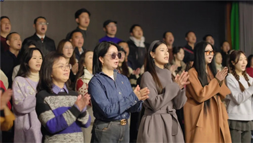 台下的坚守,是对舞台最好的馈赠。为呈现最佳效果,老师们将课余时光编织成排练的旋律:办公室里,课间十分钟的轻声哼唱校准着每一个音准;清晨微曦中,阶梯教室的晨光里,身影与乐谱相映成趣。从《世界赠予我的》的温柔缱绻,到《我爱你中国》的激昂澎湃,他们逐句打磨气息,反复推敲和声,将教育路上的执着与热忱,融进了每一声吟唱里。