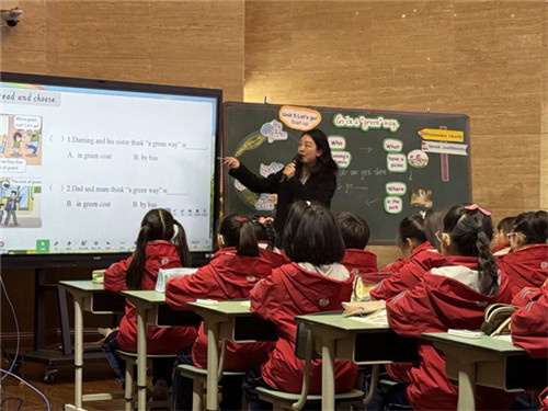 何妍蓓老师呈现新外研版四年级上册《 Unit 5 Let’s go! Start up》英语课例,通过AI朗读评价、角色扮演等形式,融合绿色出行价值引领与语言教学,充分彰显数智赋能下的学科育人特色。