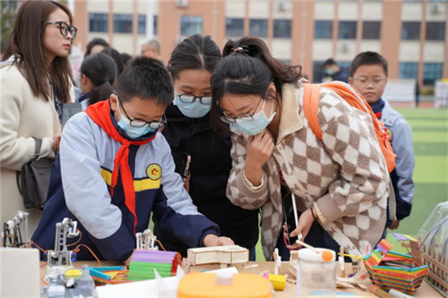 各年级、各学科与社团的项目化学习成果琳琅满目,从静态展示到动态参与,每一个展位都凝聚着师生的智慧与汗水。与会老师们沉浸式互动交流,在亲眼所见、亲身所感中,体会着项目化学习给校园带来的蓬勃生机与无限可能。