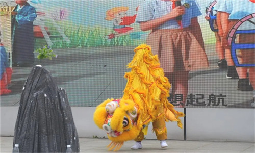 随后的动态展示环节,与会嘉宾移步至惠风楼与风雨操场。南丰小学醒狮社团的精彩表演瞬间点燃了现场气氛。
