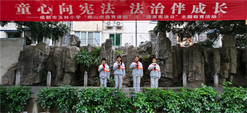 为弘扬宪法精神、维护宪法权威,近日,成都市玉林小学开展了“宪法宣传周”系列活动。